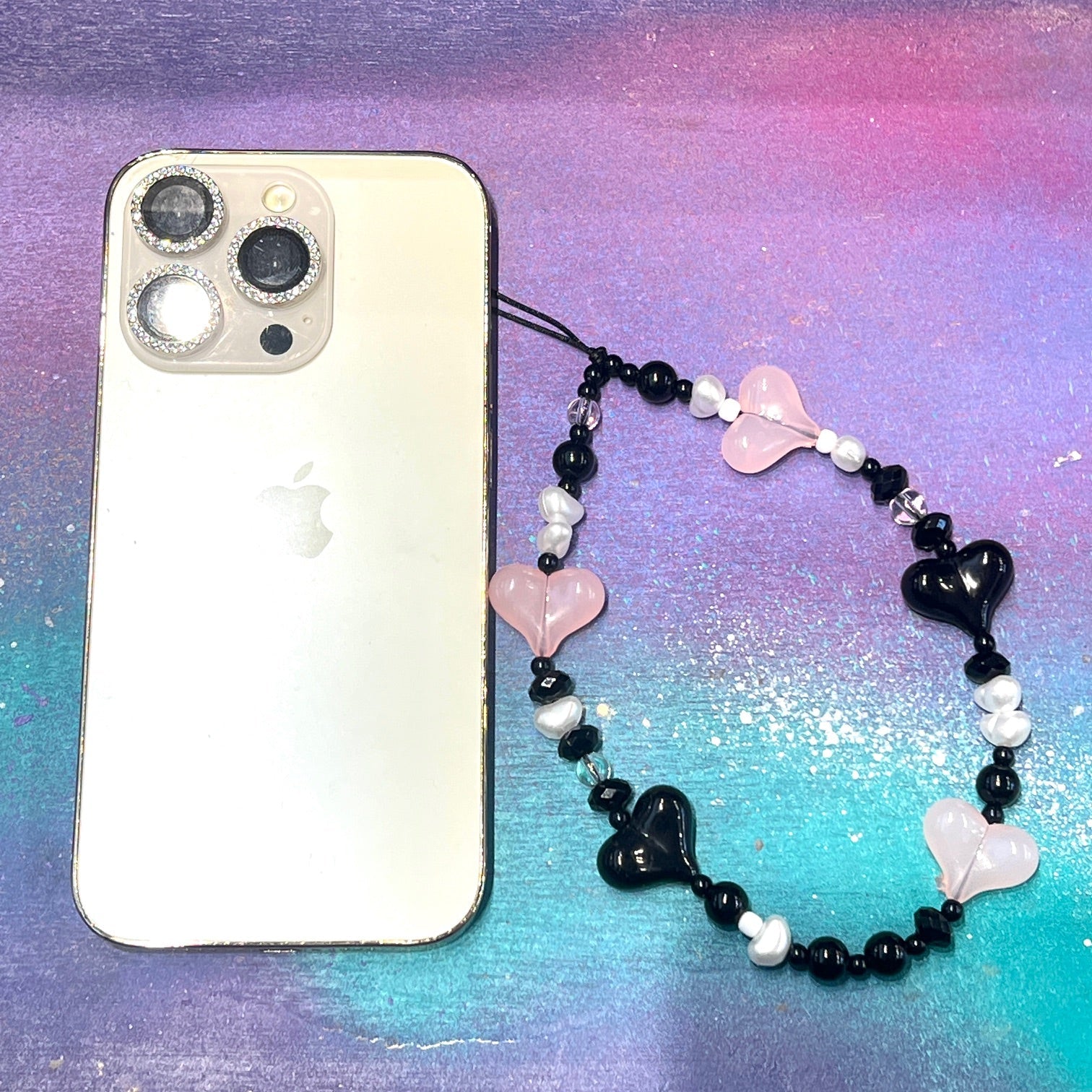 Wristlet Hearts Black Pink